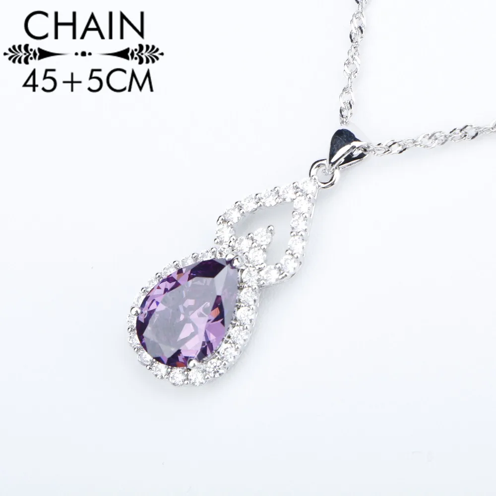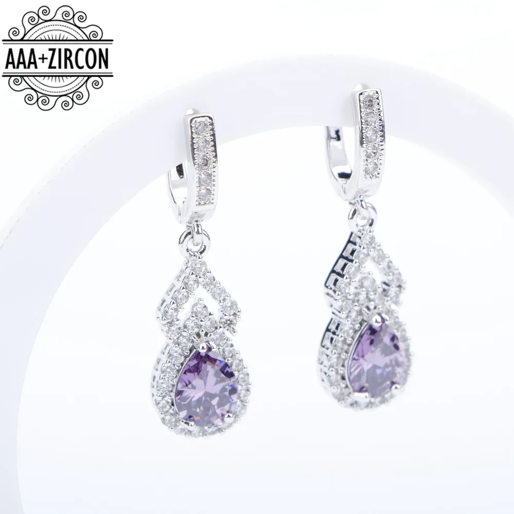 Best 2018 New Purple Zircon Silver 925 Costume Jewelry Sets Bracelets Necklace&Pendant Rings Drop Earrin