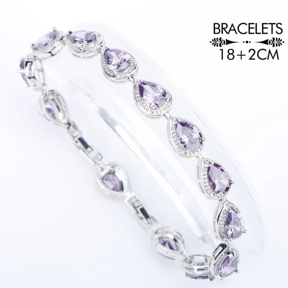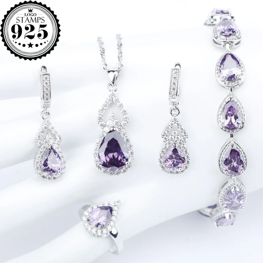 New 2018 New Purple Zircon Silver 925 Costume Jewelry Sets Bracelets Necklace&Pendant Rings Drop Earrin