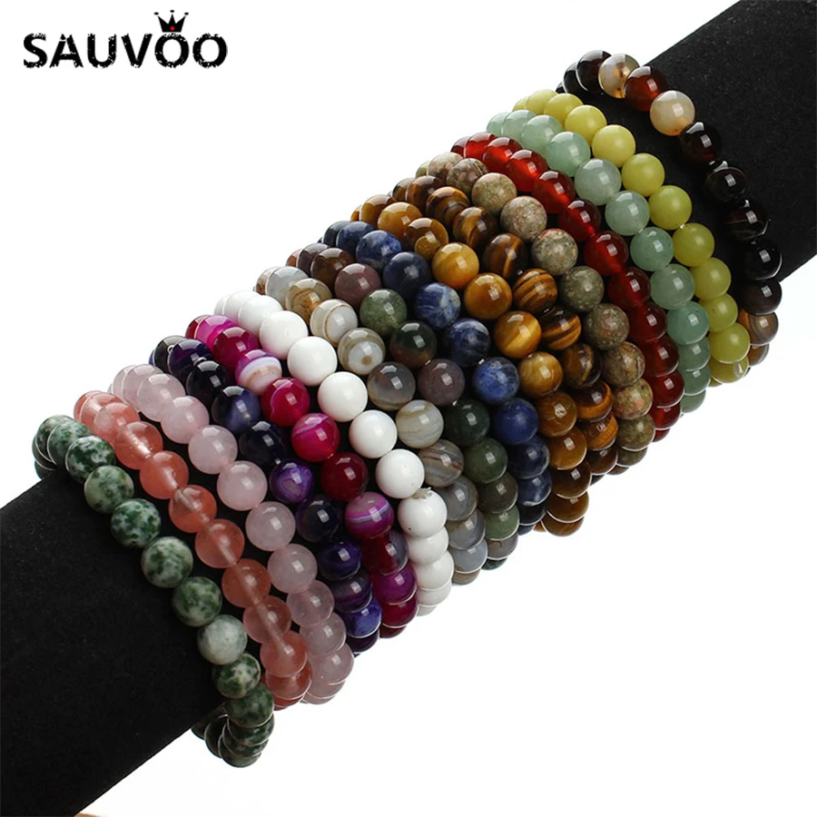 Best 2018 New Summer Style Natural Stone Beads Bracelet Women Men Pink Blue White Yellow Red Beaded Stre