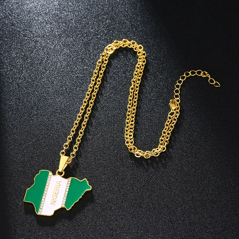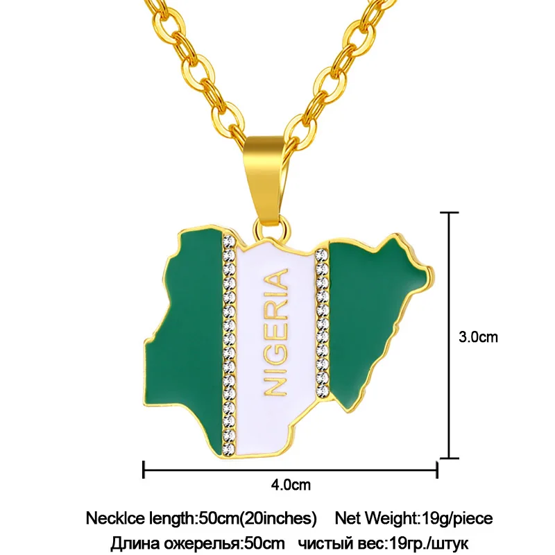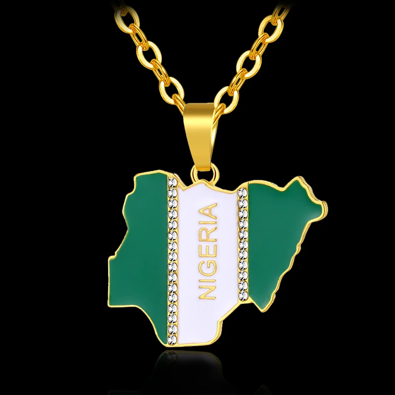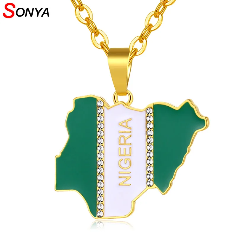 Promo SONYA Nigeria Map Flag Crystal Pendant Necklaces For Women Men Silver/Gold Color Nigerian Jewelry P