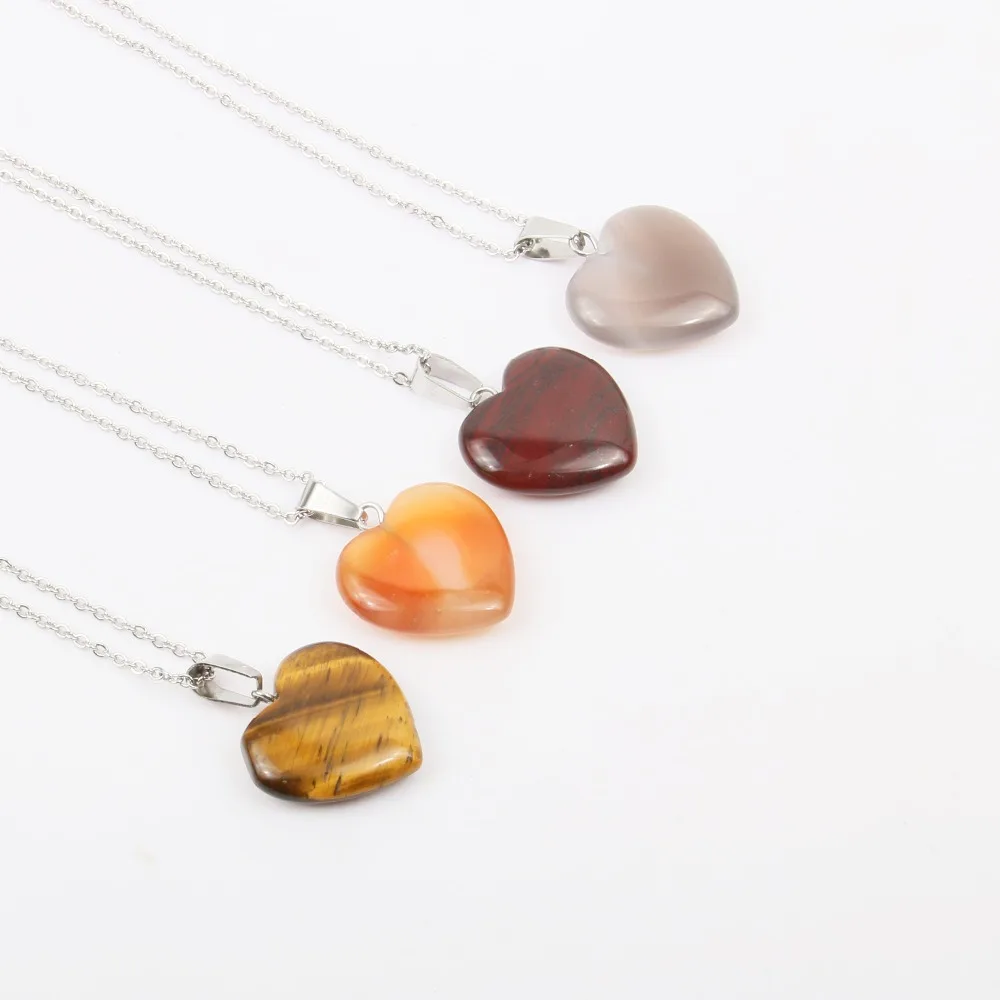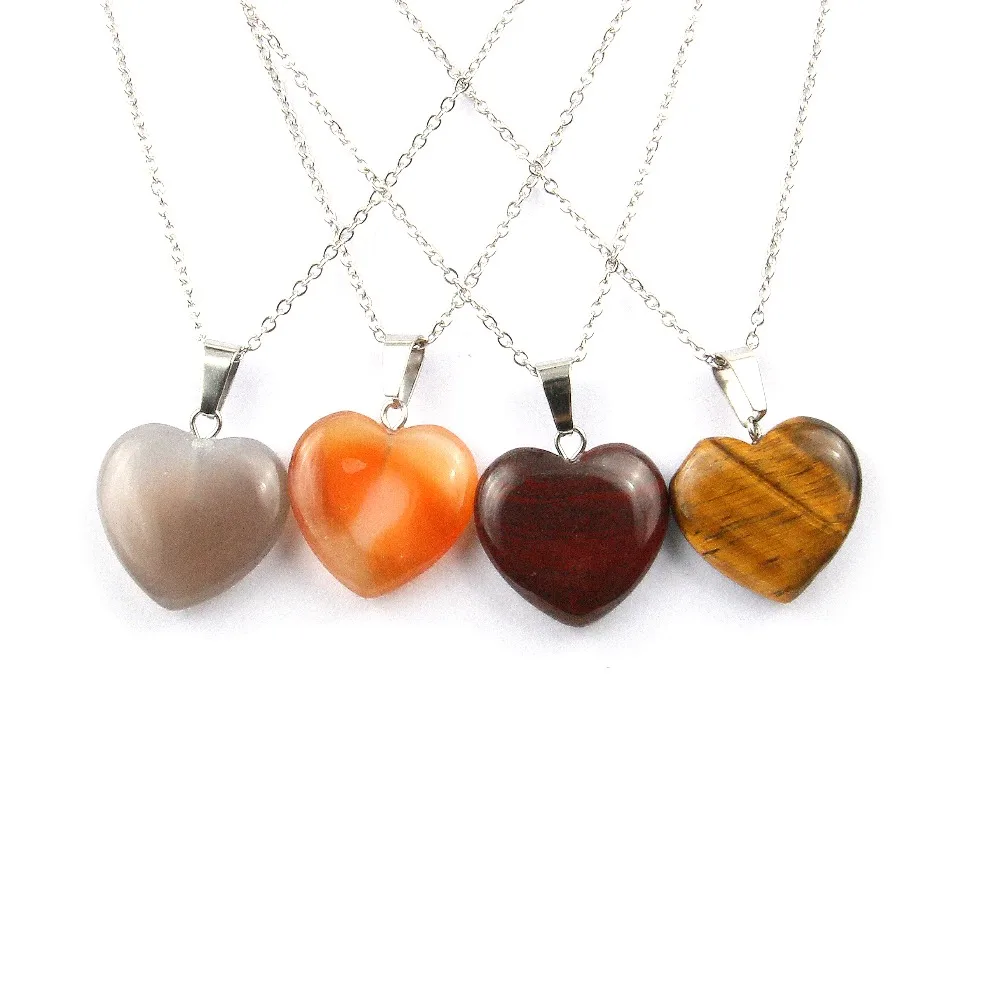 Best Wholesale natural stone pendant heart-shaped natural stone tiger eyes necklace quality stainless st