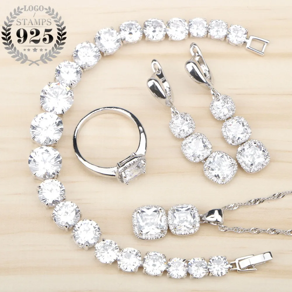 Buy Women White Zircon Silver 925 Jewelry Sets Bracelets Pendant Necklace Rings Earrings With Stones Se
