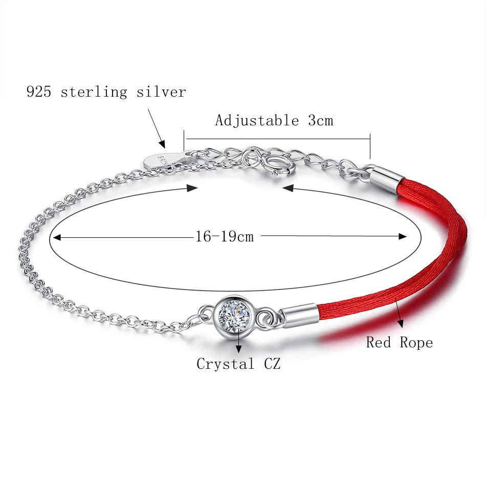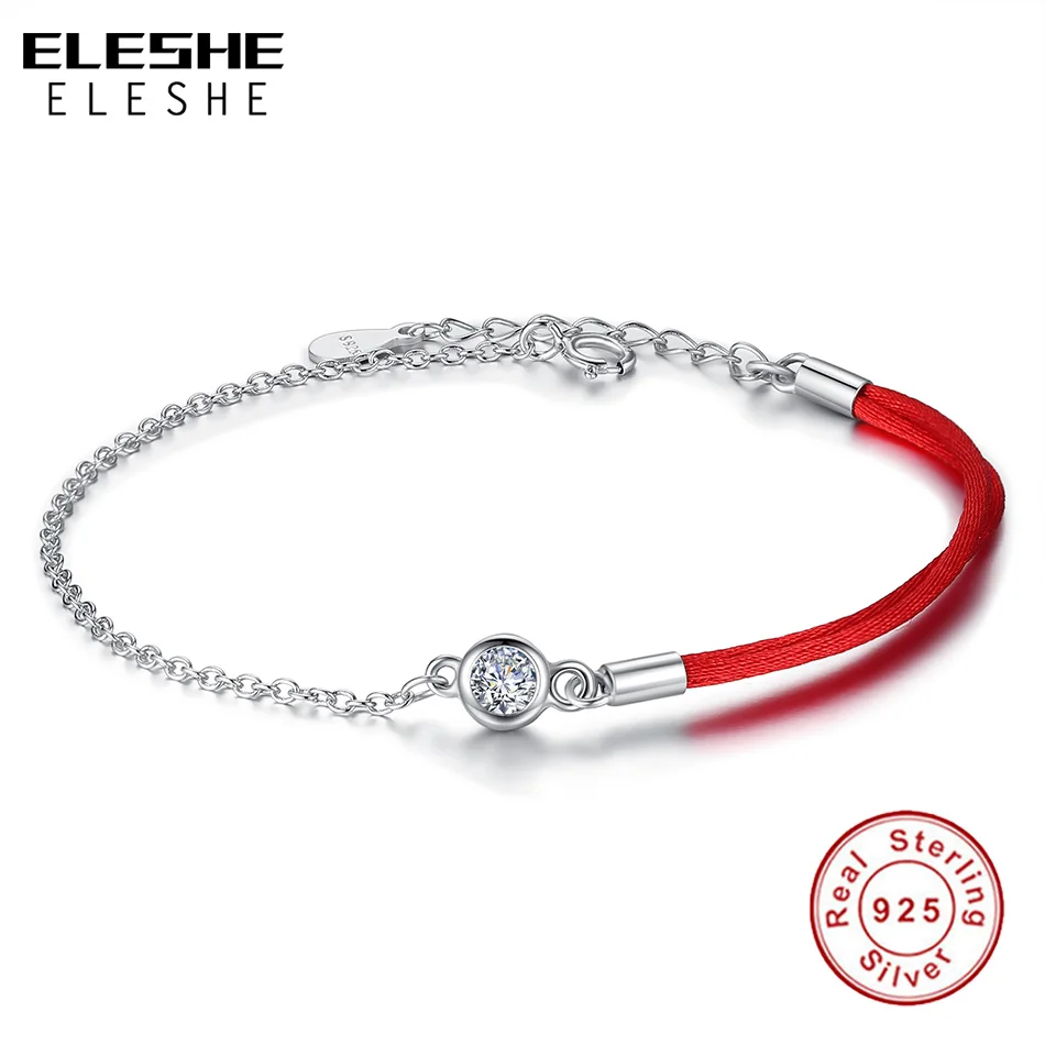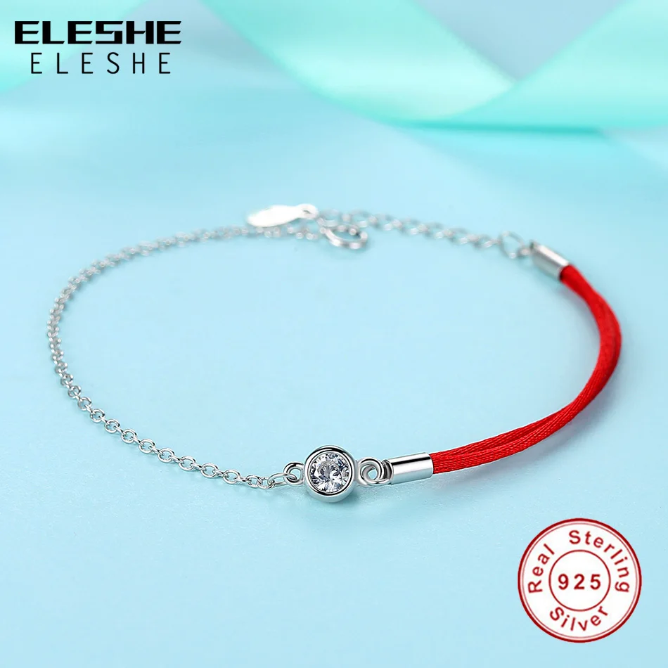 Buy ELESHE 925 Sterling Silver Bracelet for Women Crystal Round Charm Bracelets Lucky Red Thread Rope C