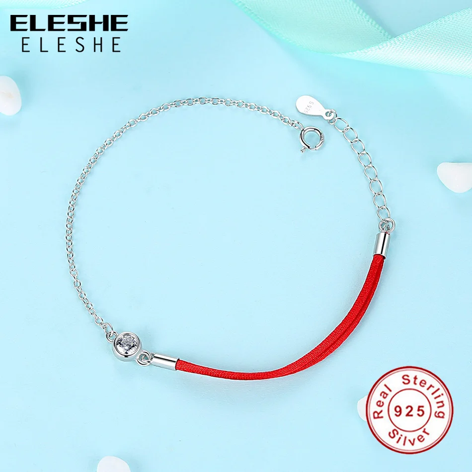 Best ELESHE 925 Sterling Silver Bracelet for Women Crystal Round Charm Bracelets Lucky Red Thread Rope C
