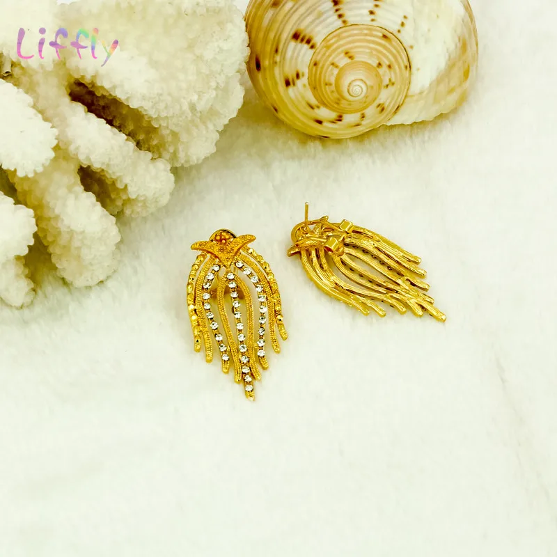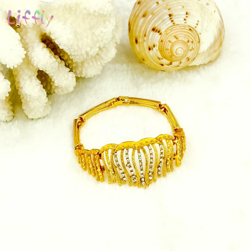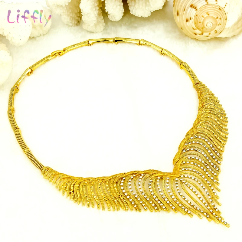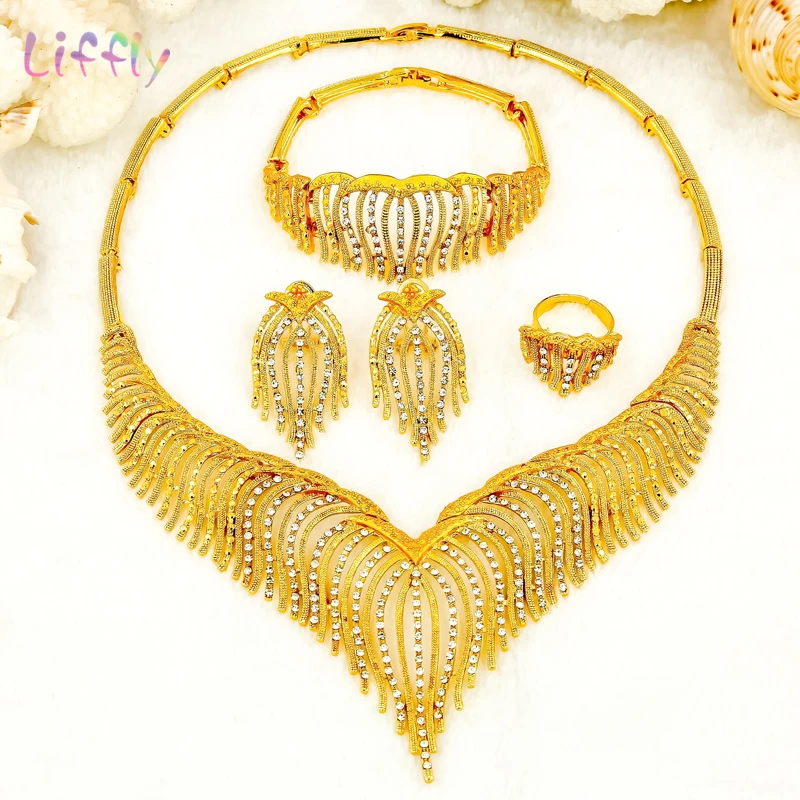Buy Liffly Fashion Jewelry Sets Nigeria Dubai Gold Jewelry Sets for Women Africa Bead Bridal Yellow Jew
