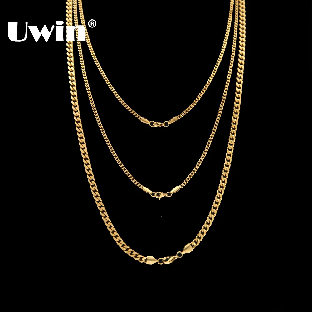 Buy Uwin Top Quality Stainless Steel Necklace Cuban Link Chain Gold&Steel 3mm&5mm Hiphop Fashion Jewelr