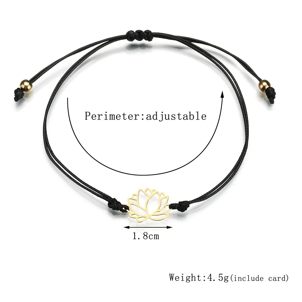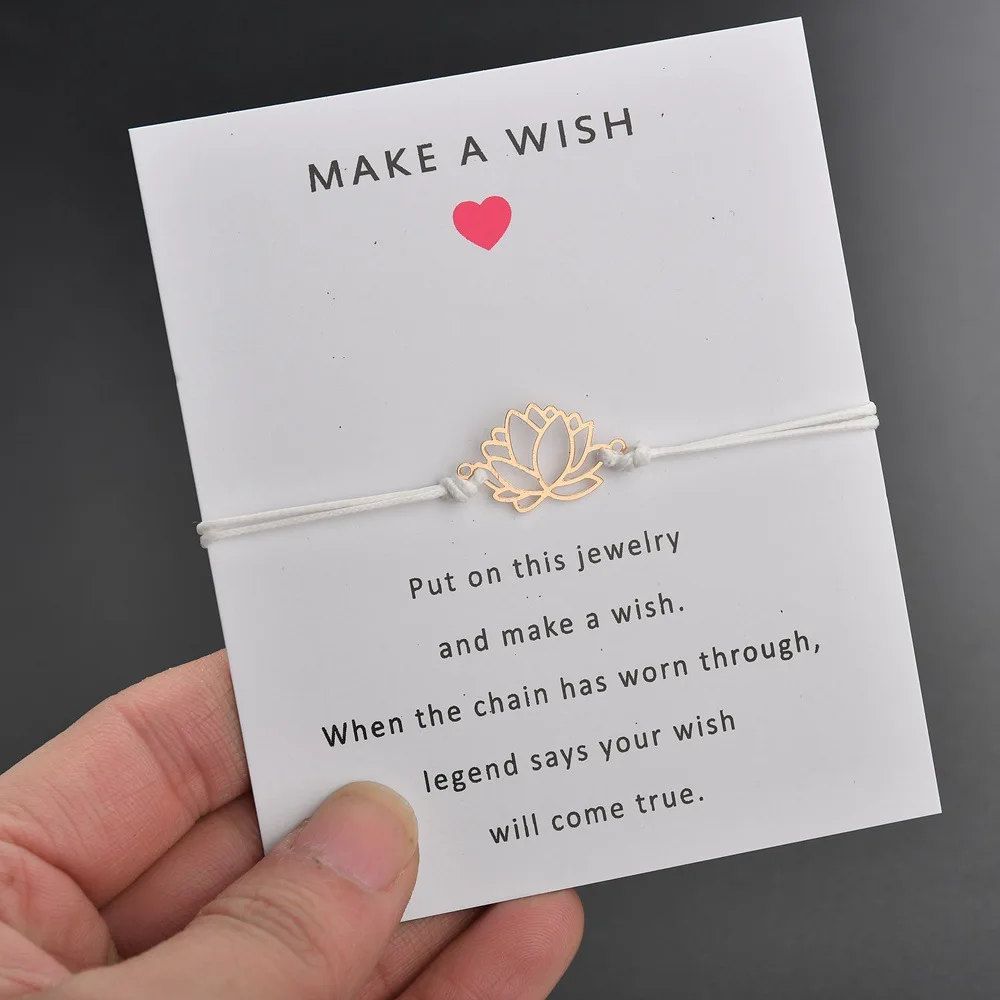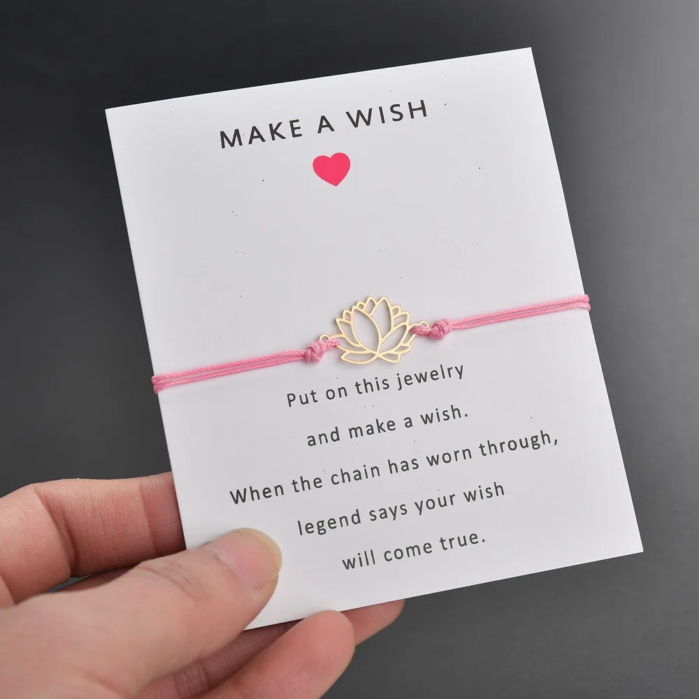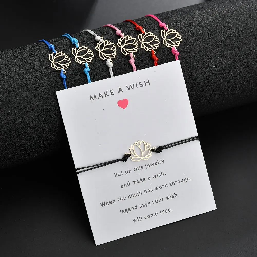 New 2019 Make A Wish card adjustable bracelet gold color Lotus Flower pendant romantic 7 colors rope c