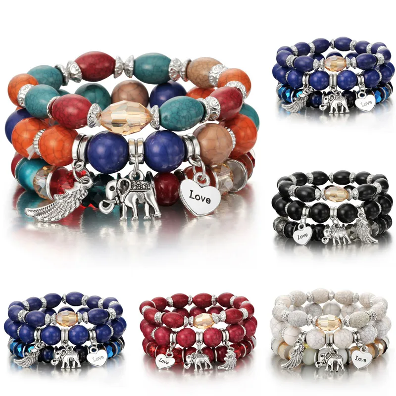 New 3-4pcs/set Fashion Boho Bracelets & Bangles Women Stone Beaded Bracelet Set With Colorful Gem Long