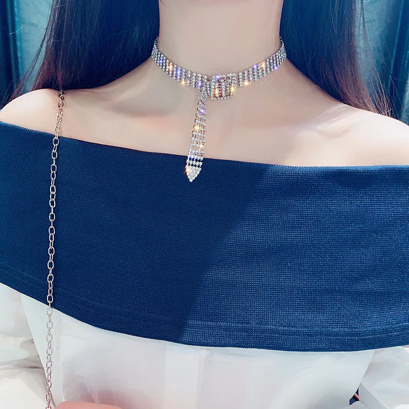 New FYUAN Fashion Full Rhinestone Choker Necklaces for Women Bijoux Shiny Silver Color Button Necklaces