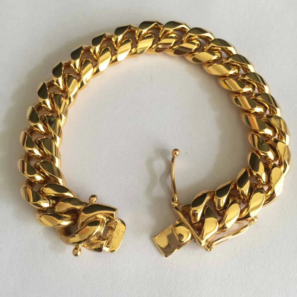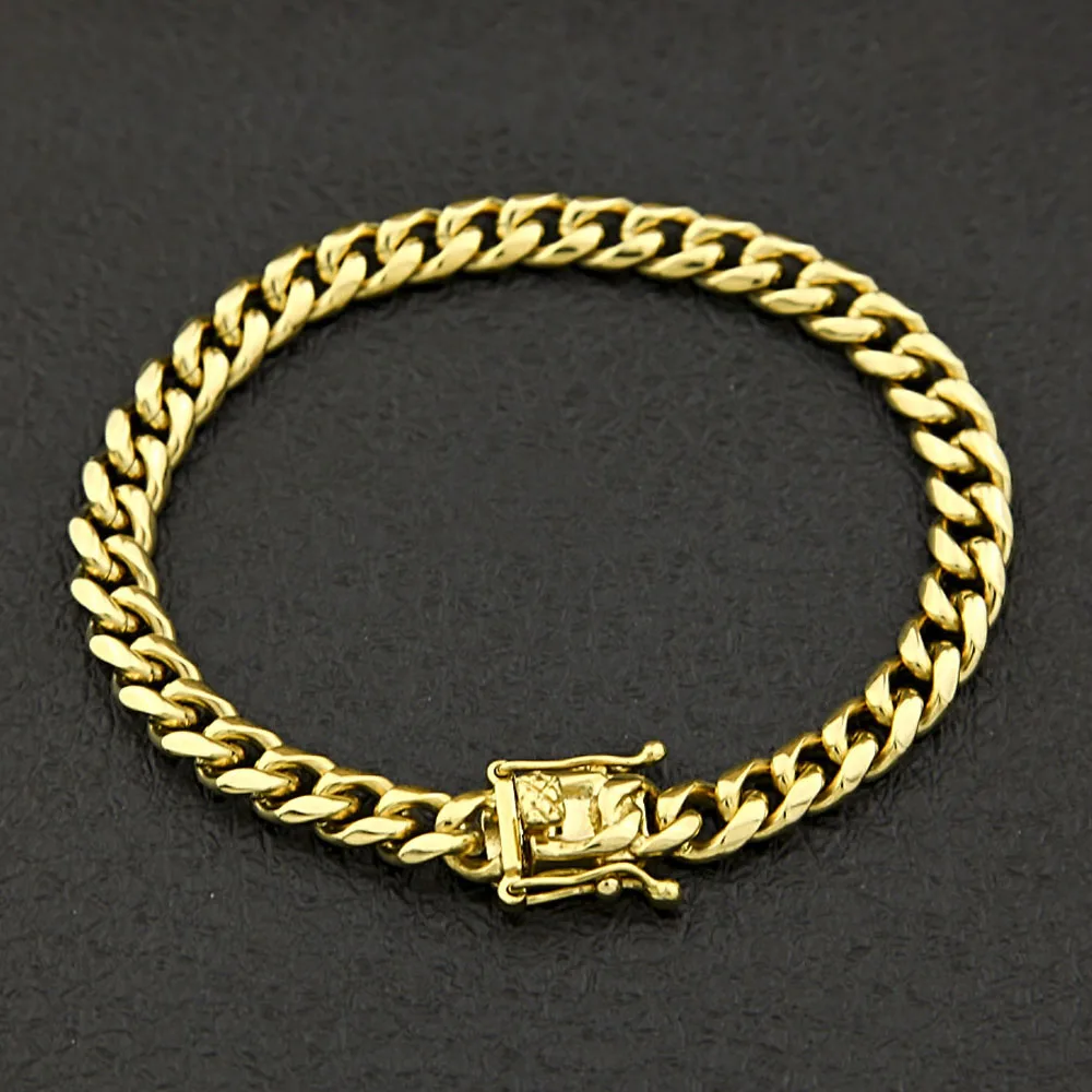 New High Quality Stainless Steel Curb Cuban Chain Dragon Clasp Bracelets Men Fashion Gold Silver Hip ho