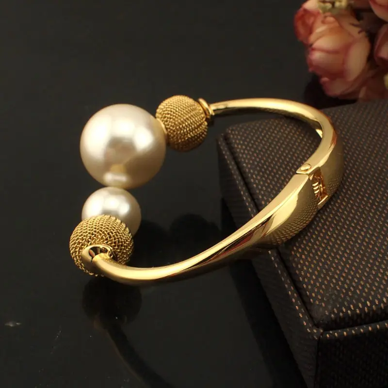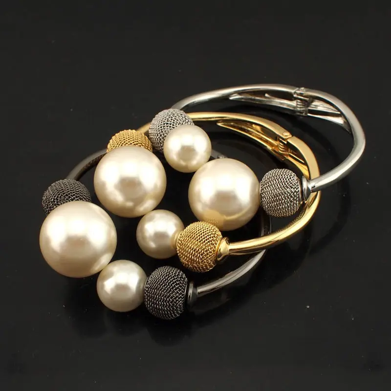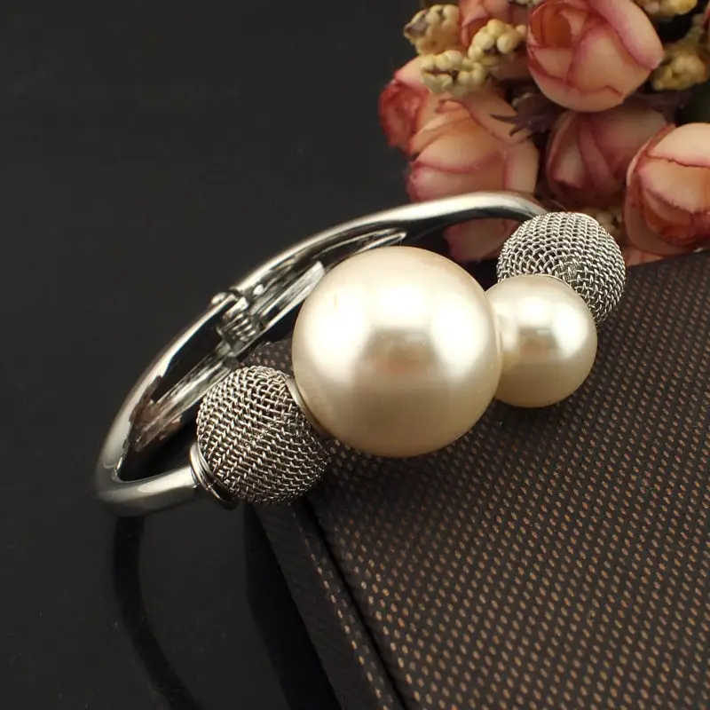 Buy MANILAI Charm Accessories Imitation Pearl Bracelets Manchette Fashion Alloy Cuff Bangle Statement J