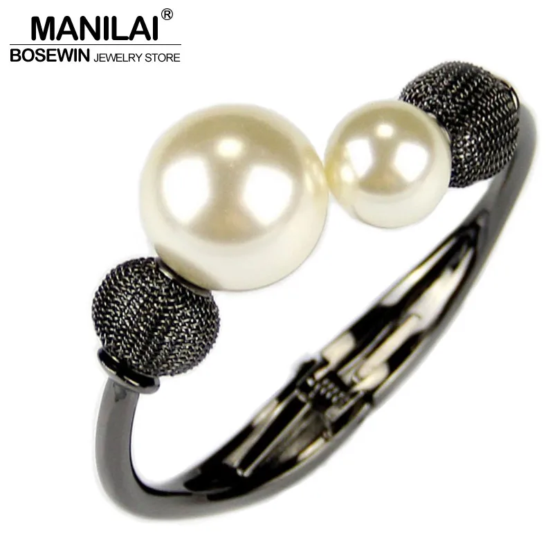 New MANILAI Charm Accessories Imitation Pearl Bracelets Manchette Fashion Alloy Cuff Bangle Statement J