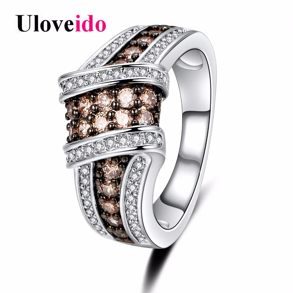 New Uloveido Wedding Rings for Women Engagement Jewellery Stone Champagne Ring Jewelry Decoration for W