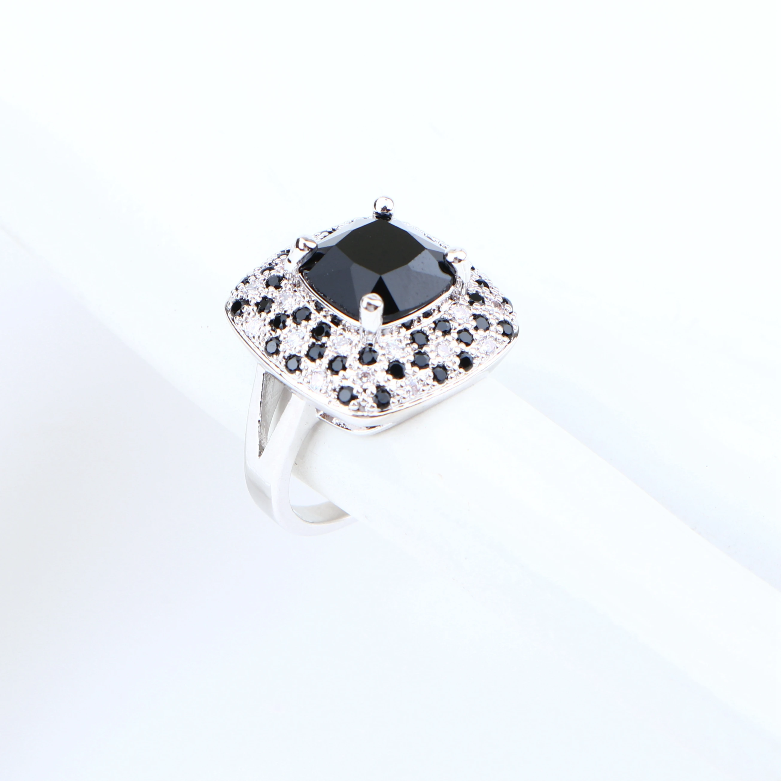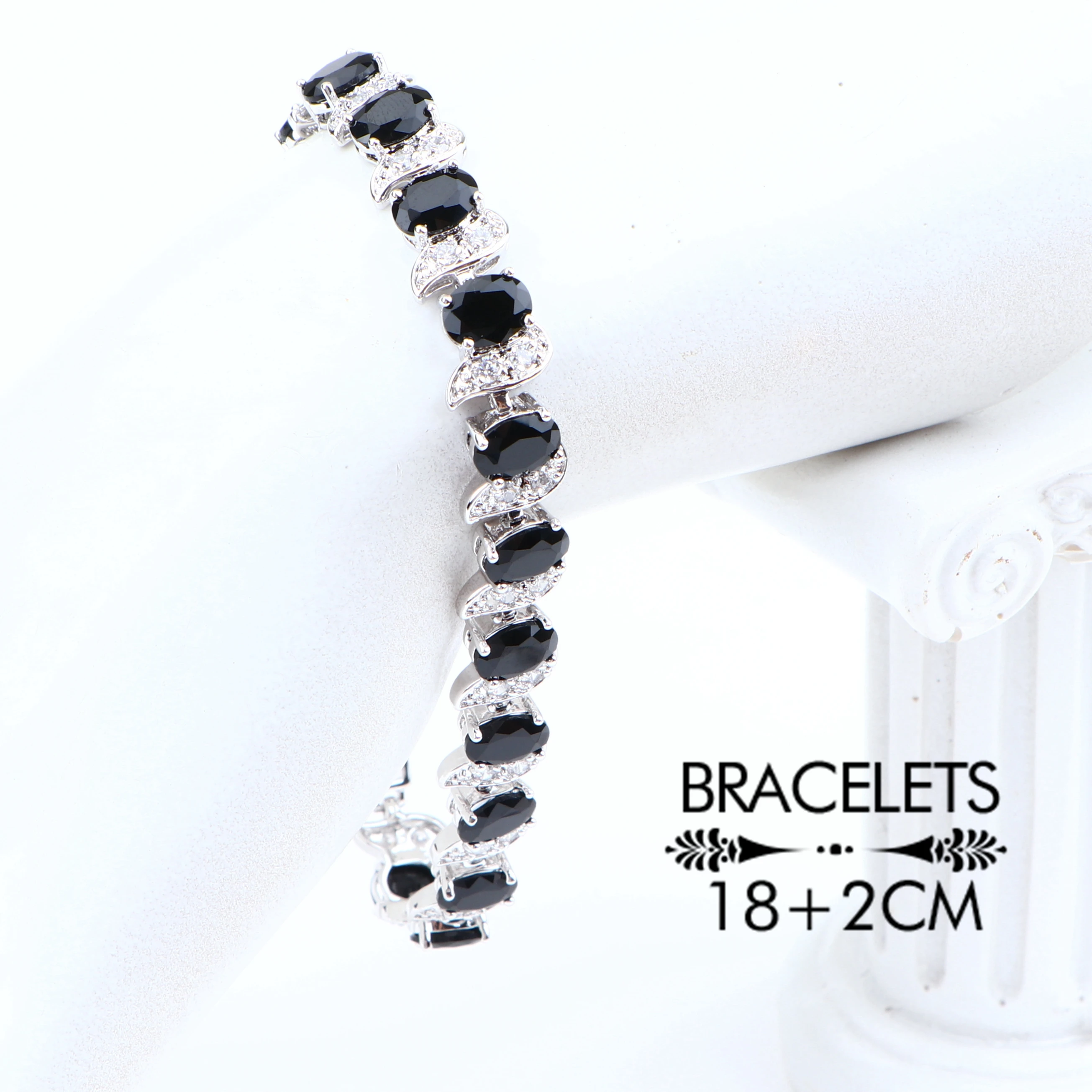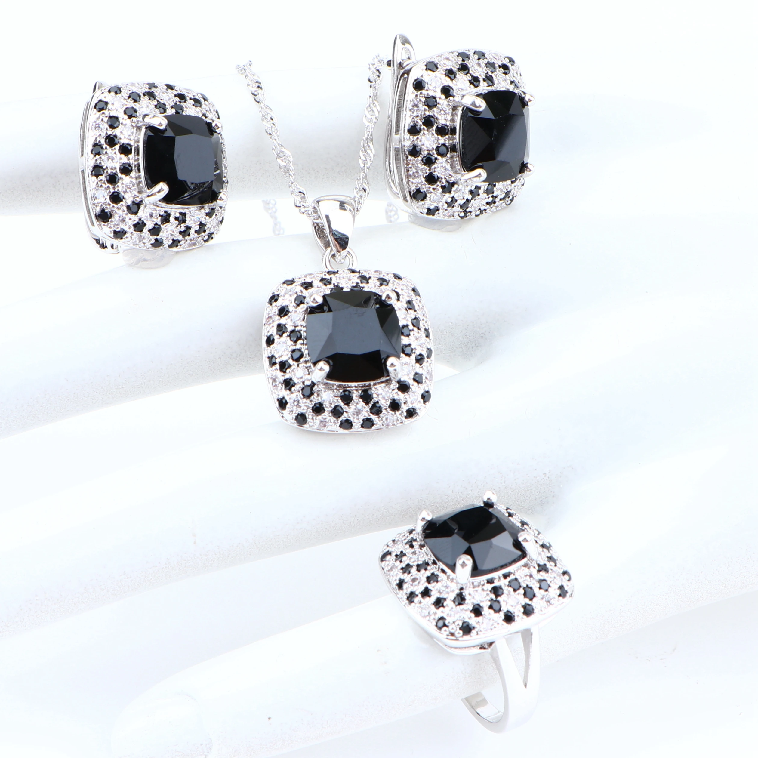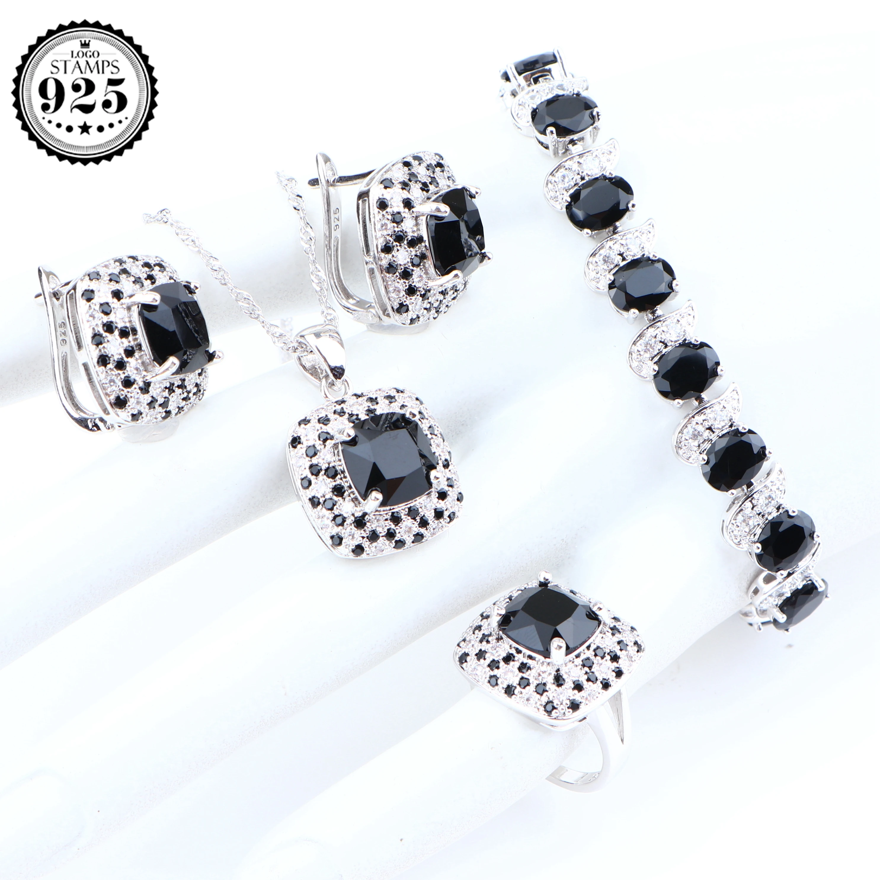 New Wedding Silver 925 Jewelry Sets For Women Black Zirconia Earrings Bracelets Ring Costume Jewelry Pe