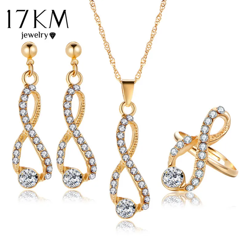 Buy 17KM Bridal Jewelry Set Crystal Long Necklace Infinite Earrings Gold Color Rings 2017 Simple Design