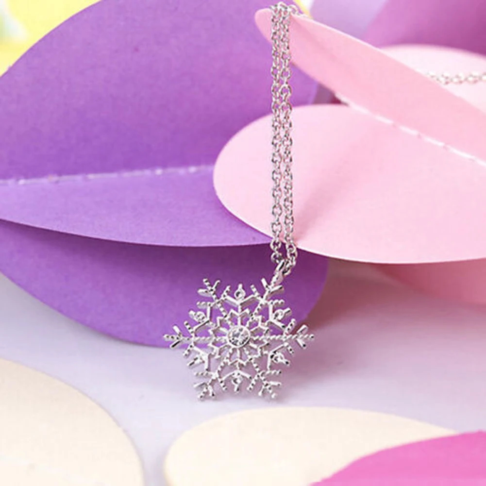 Buy Fashion Frozen Snowflake Shiny Rhinestone Pendant Chain Necklace Christmas Gift