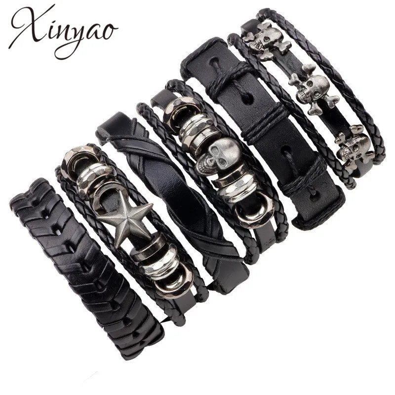 Promo XINYAO Black Wristband Genuine Leather Charm Bracelet Sets Men Jewelry Punk Vintage Braided Leather