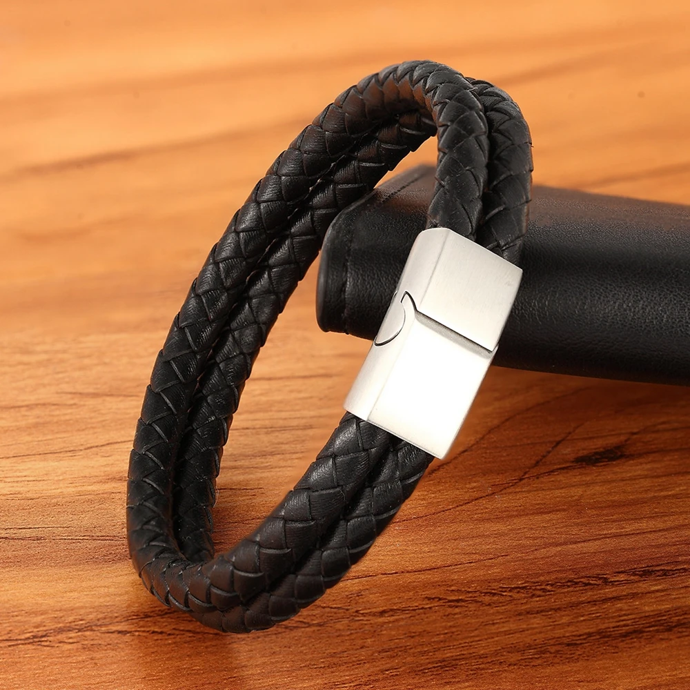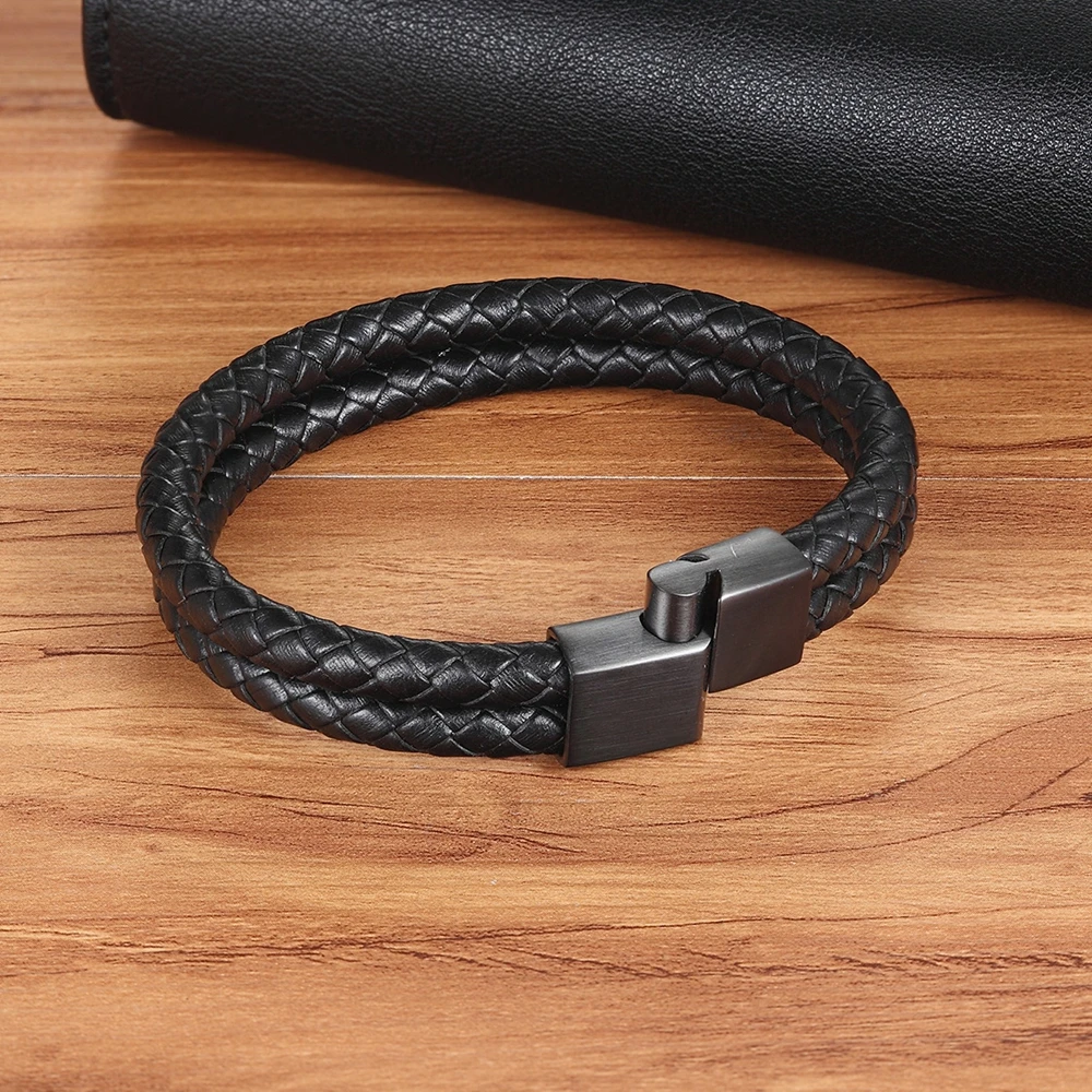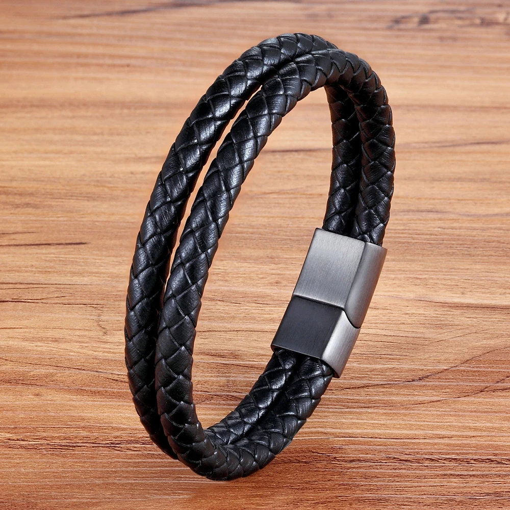 Promo XQNI Personality Genuine Leather Bracelet Double Layer Black Bangle For Female Unisex Accessories J